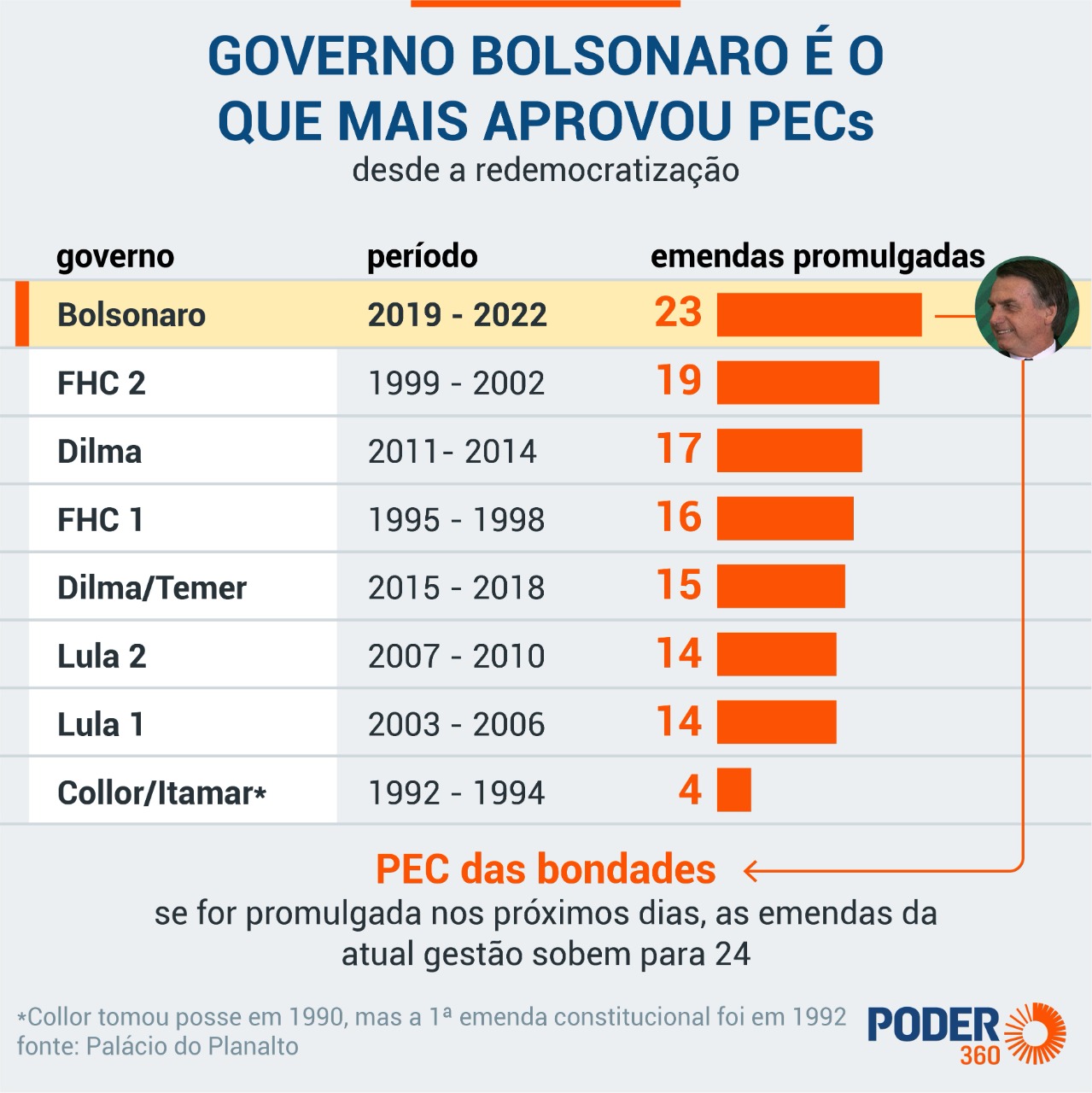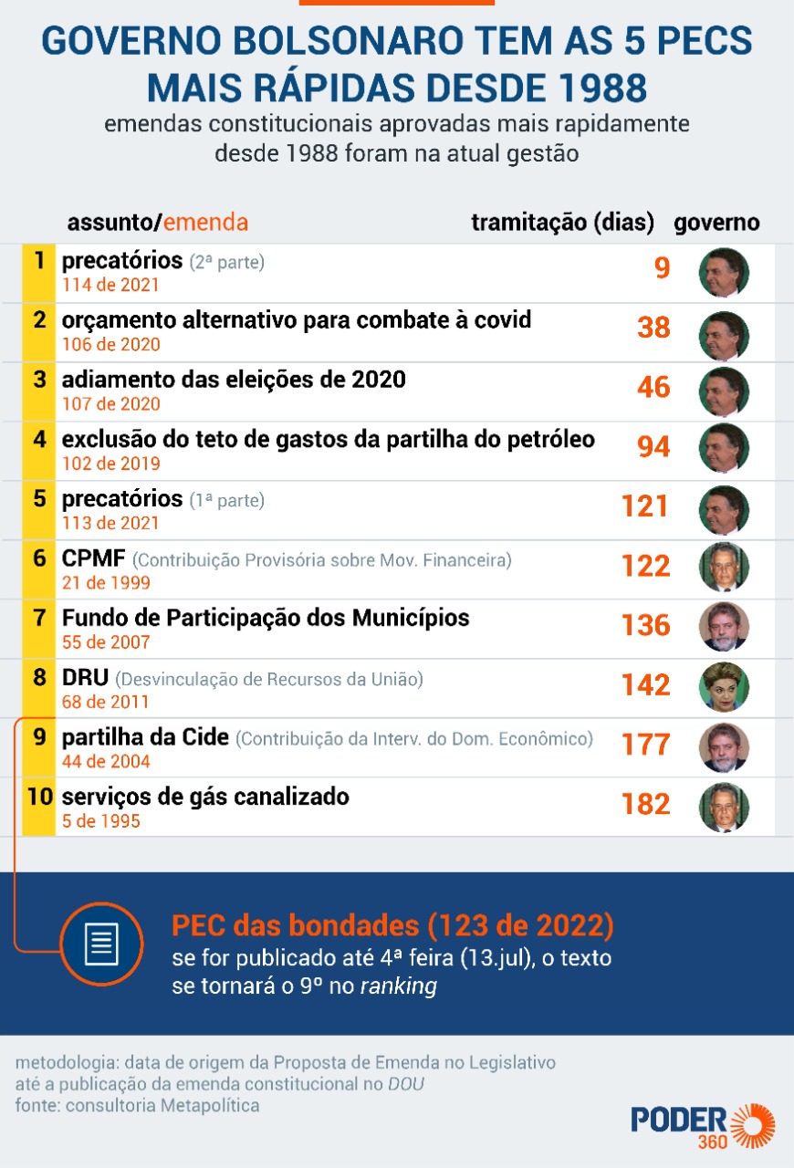 Gestão Bolsonaro tem 5 PECs com aprovação em tempo recorde publicado por Poder 360 (7/2022).