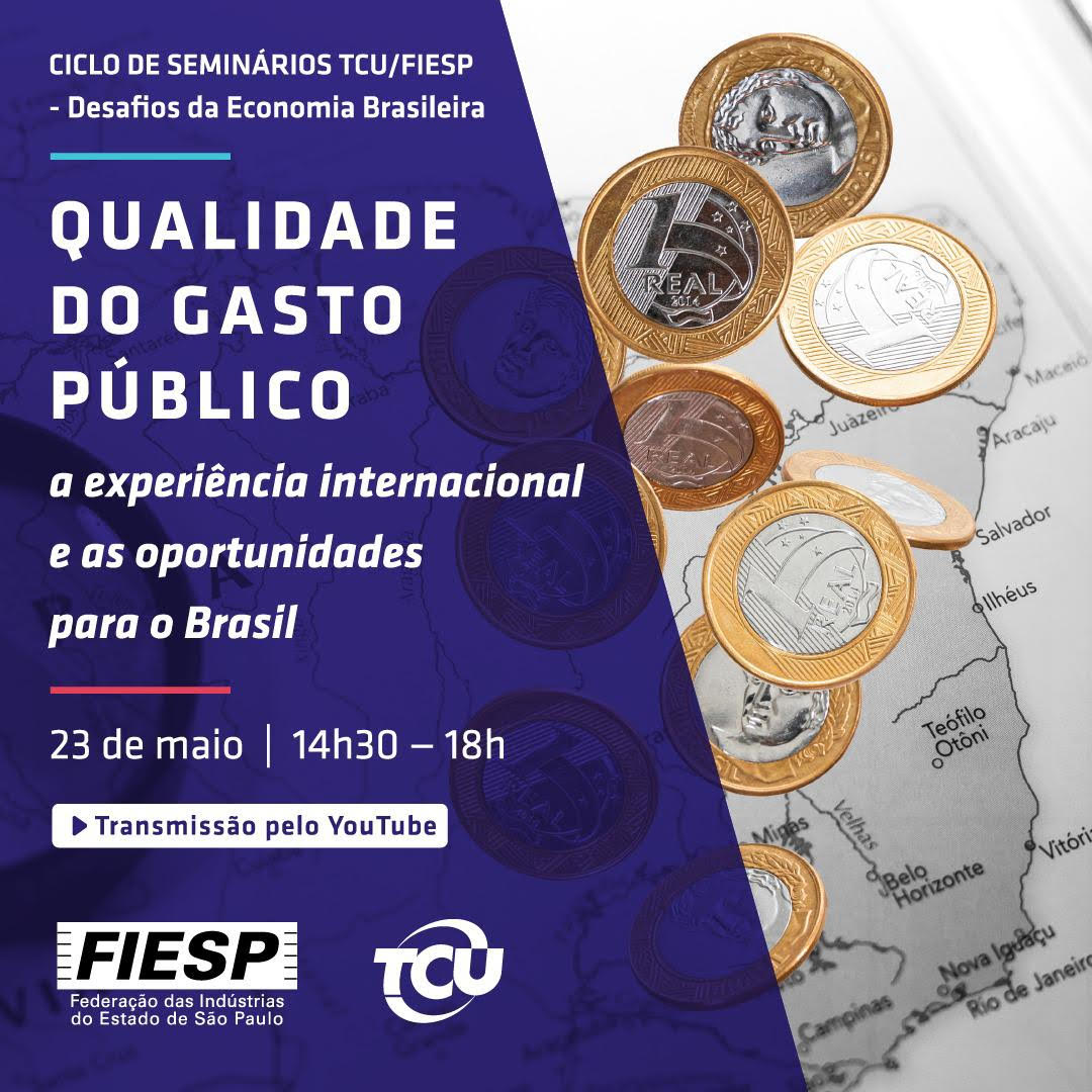 Desafios da Economia Brasileira: Qualidade do Gasto Público: A Experiência Internacional e as Oportunidades para o Brasil Ciclo de Seminários promovidos pelo TCU/FIESP, o evento será realizado no dia 23 de maio, das 14h30 – 18h (5/2022).