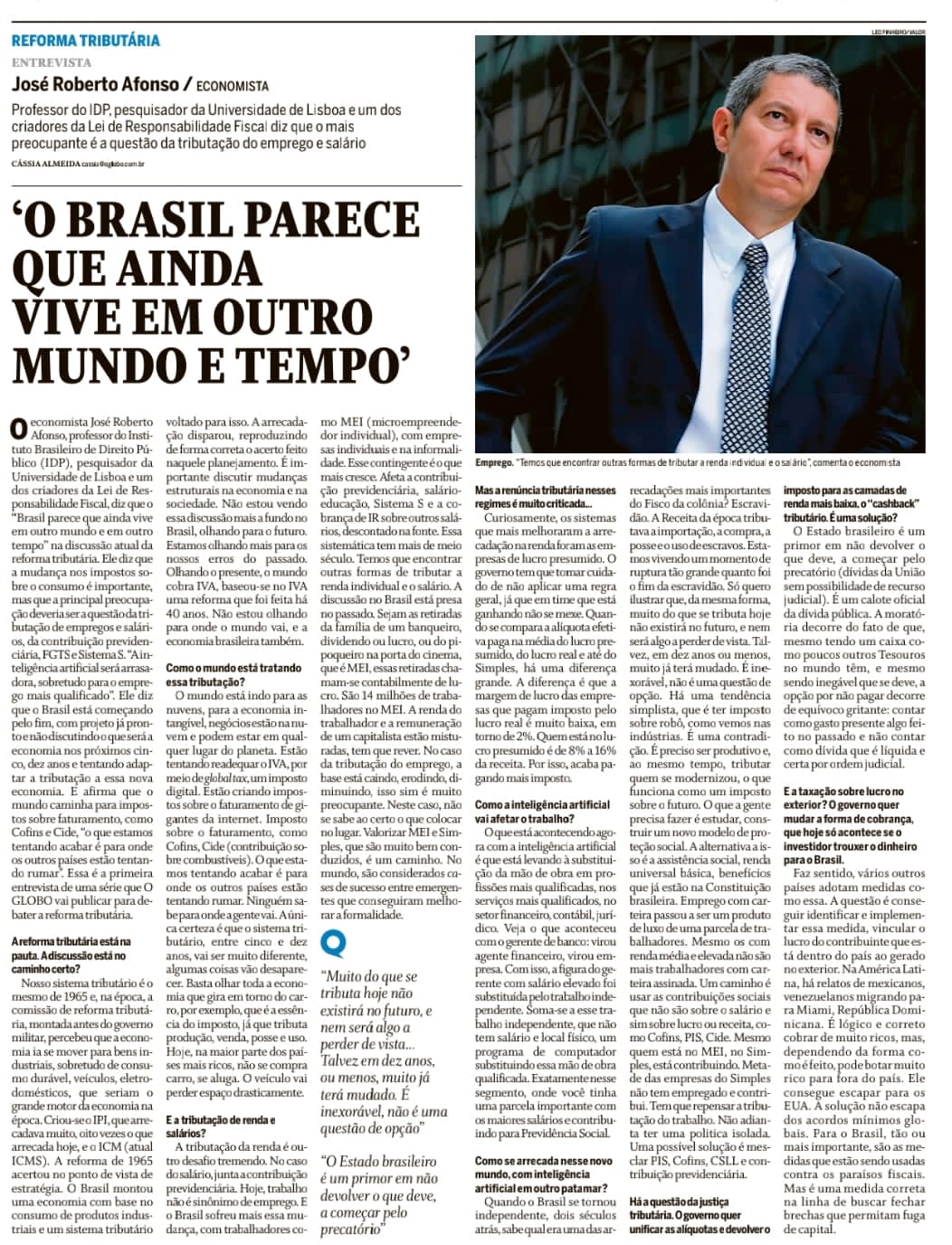 O Brasil parece que ainda vive em outro mundo e tempo entrevista cedida por José Roberto Afonso ao Globo (5/2023)