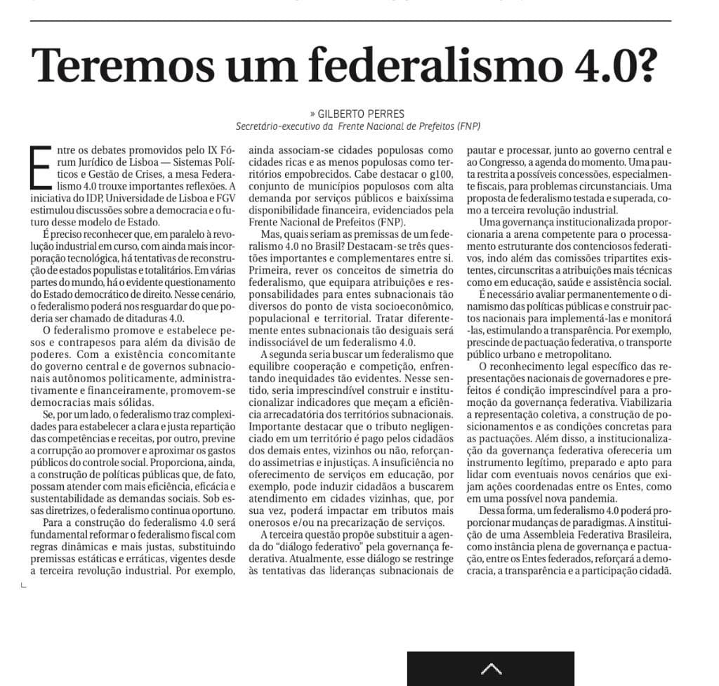 Teremos um federalismo 4.0? por Gilberto Perres (2021).